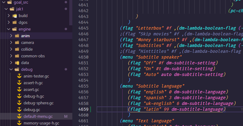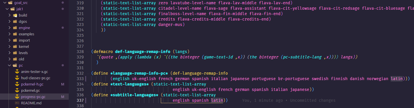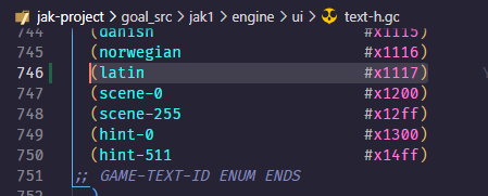 1. We now have to setup text entries for this new language. First add it to the game-text-id enum in the respective all-types.gc file, for Jak 1 that is decompiler/config/all-types.gc