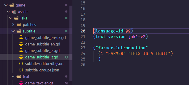 First off, if you are going to contribute subtitles you will need to eventually get the changes merged into our GitHub repository - https://github.com/open-goal/jak-project