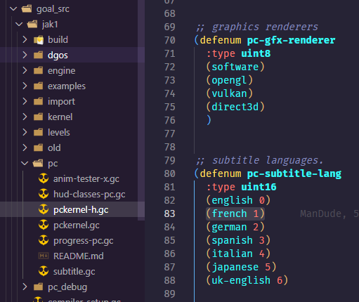 1. Open goal_src/{GAME_NAME}/pc/pckernel-h.gc and look at the pc-subtitle-lang enum